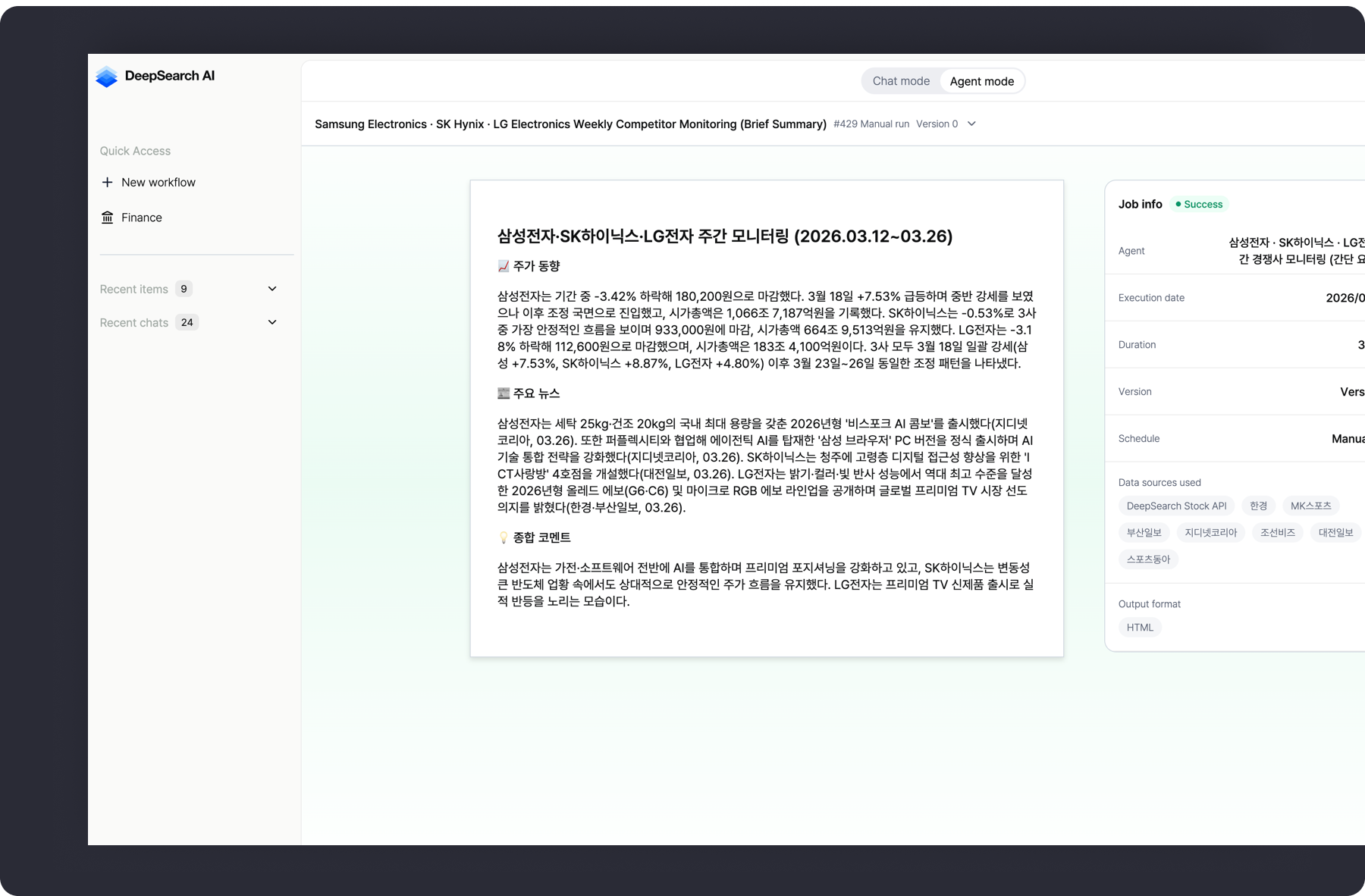 Automates in-depth research on industries/companies/themes. Derives insights through comprehensive analysis. (e.g., Korea Investment & Securities)